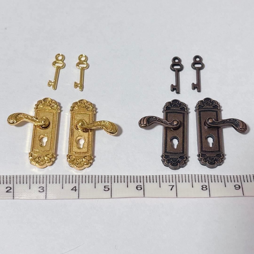 2色2セット 合金アンティークドアノブ 鍵 ミニチュア