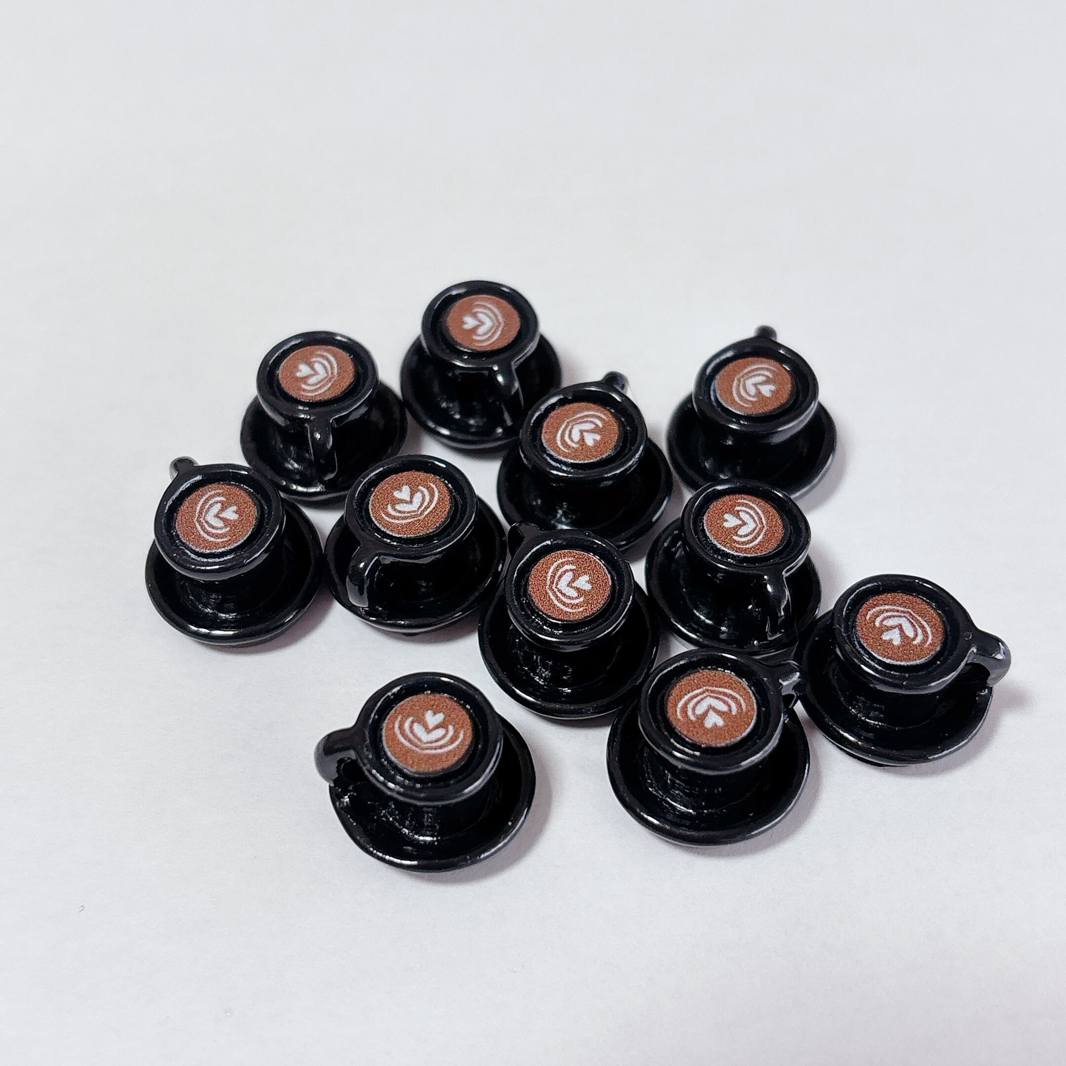 【500円ミニパック】10個 黒ミニラテアート ソーサー一体型 ミニチュア