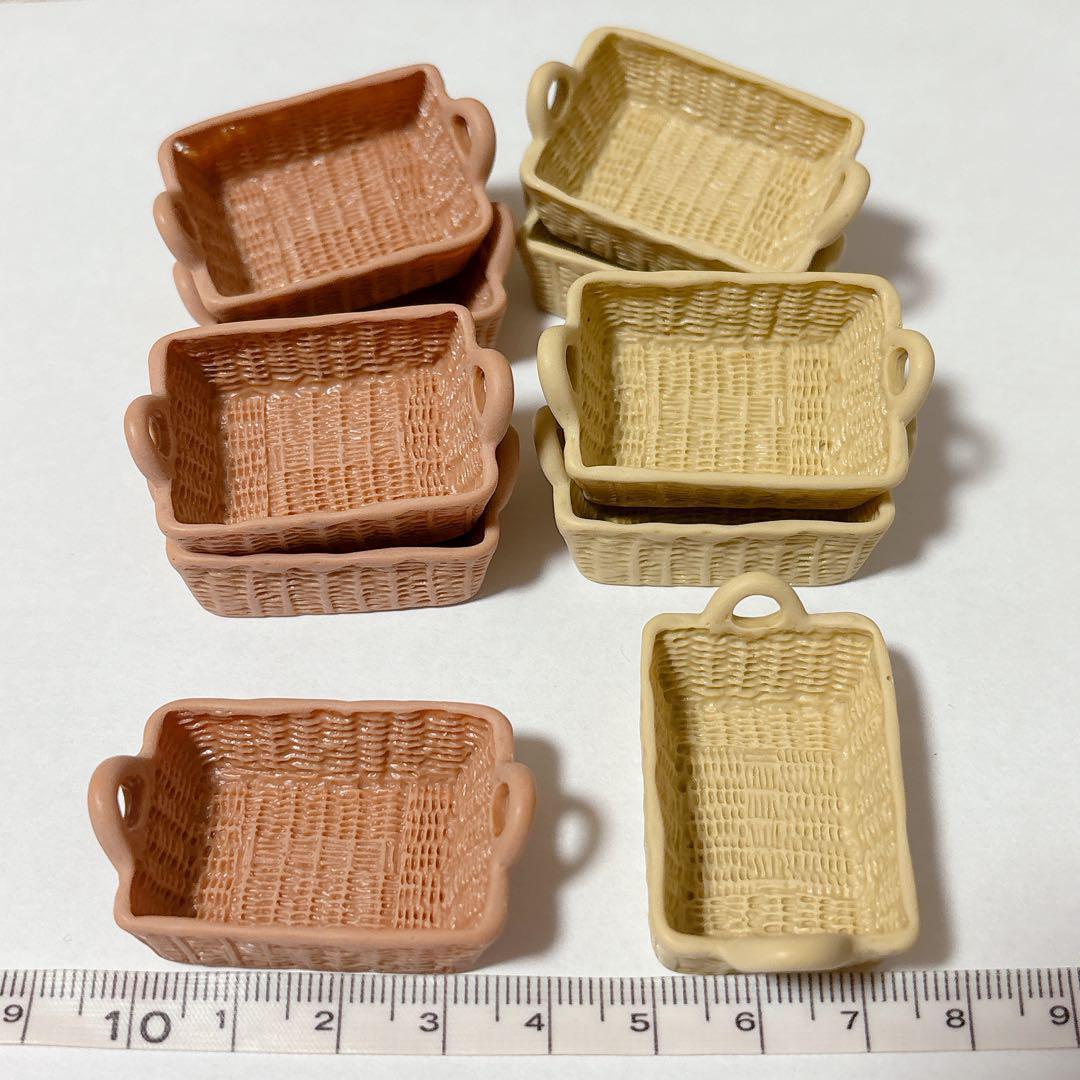 リアルな編み目と持ち手付きデザインが魅力の、ミニチュアバスケット10個セットです。