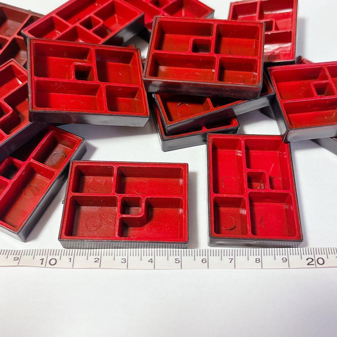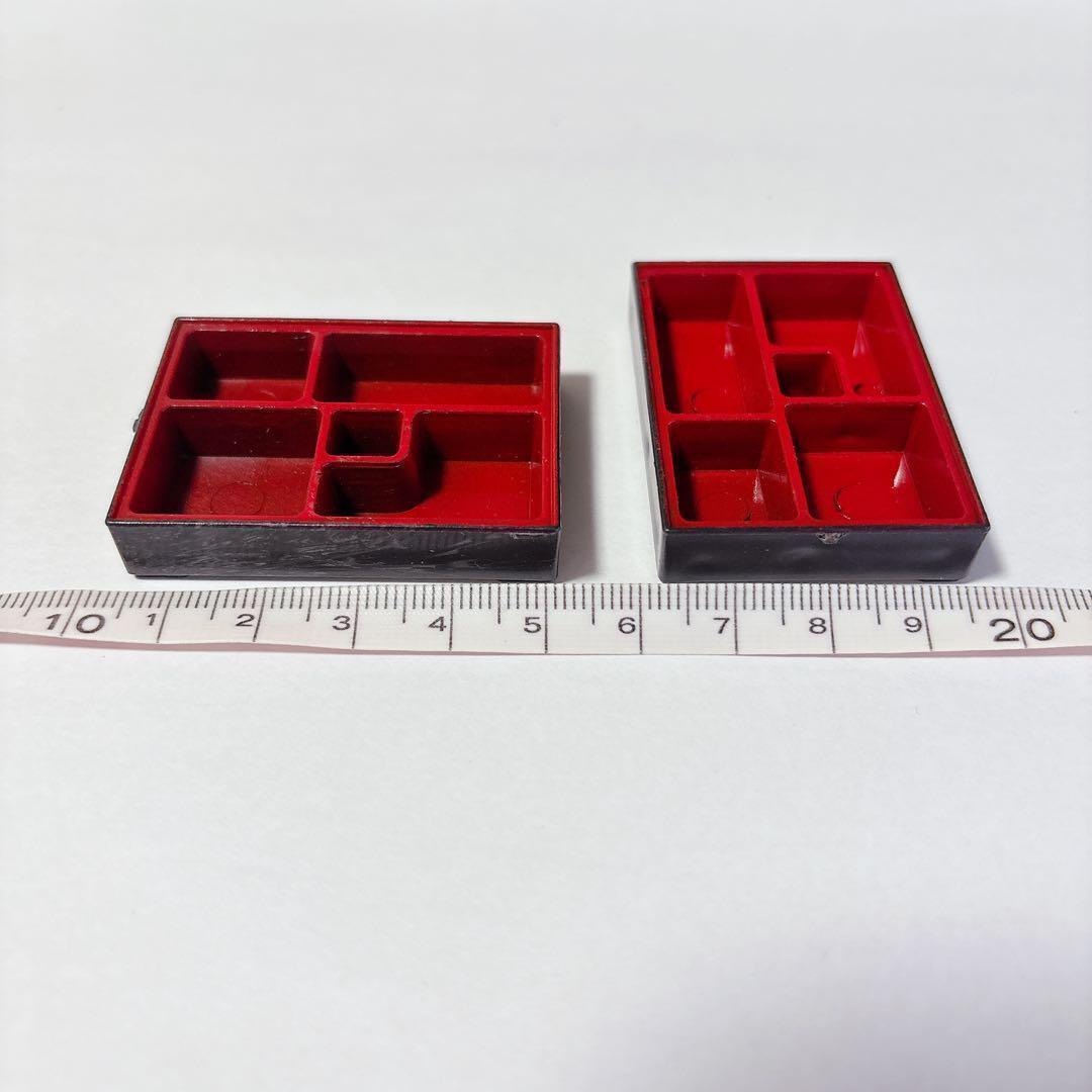 【ミニチュアお弁当箱 黒×赤】5枠仕切り 15個セット|和風ディスプレイにおすすめ